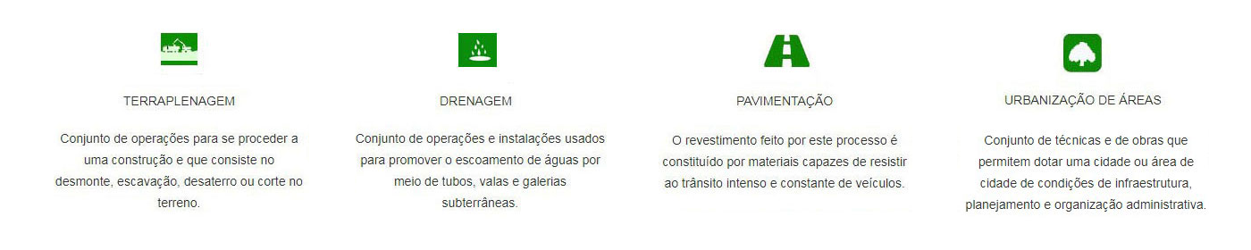 Presta serviços de terraplenagem, drenagem, pavimentação além de urbanização de áreas.